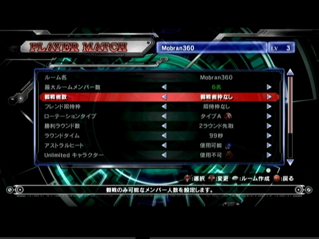 あと、ルーム人数の設定のところで、観戦者とプレイヤーの枠を