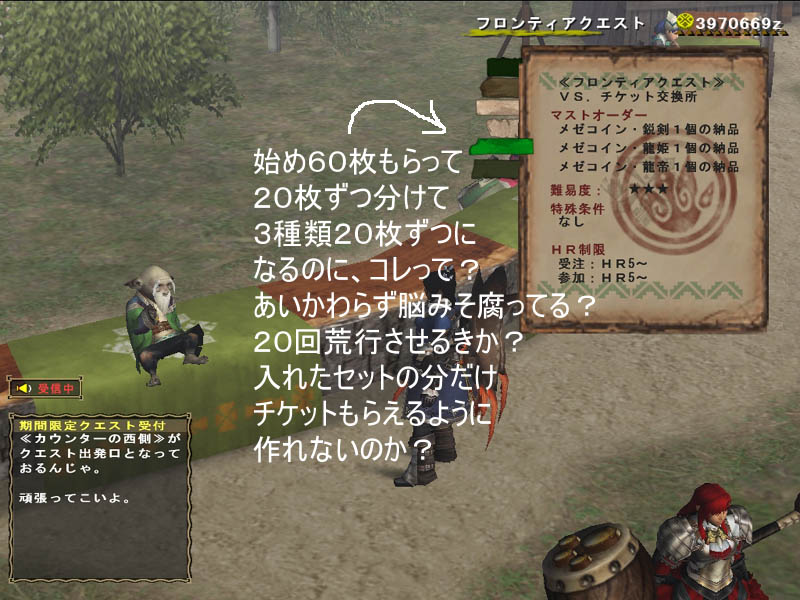 下では簡単なクエじゃチケットやらないぜと言ってるぜ?