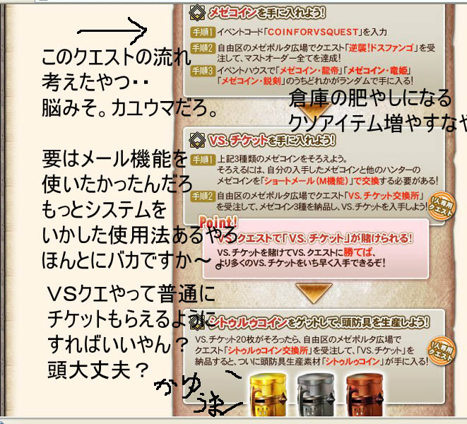 わかりにくい。まぎらわしい。なんでもクエにするな。クソアイテム増やすな。