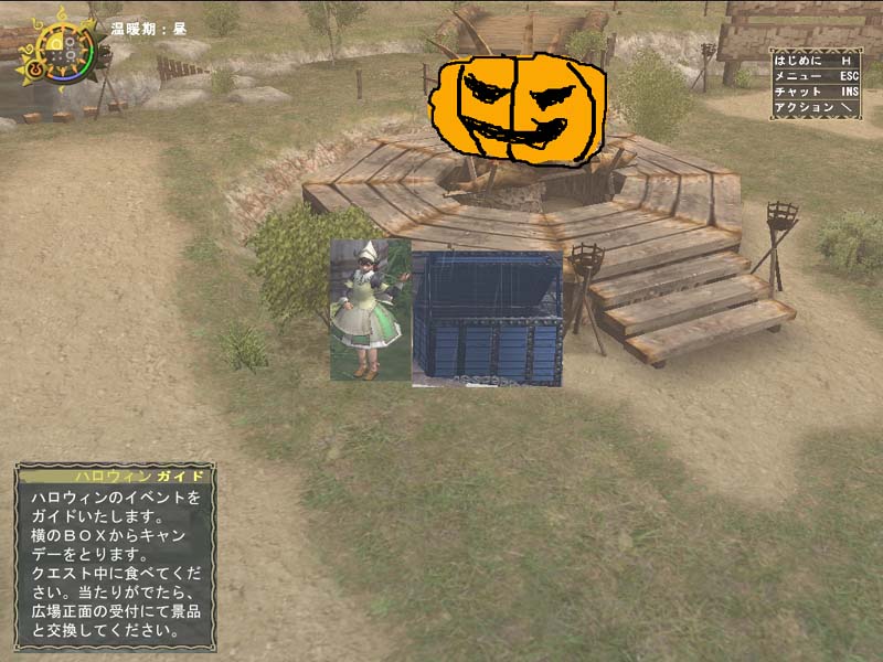 次はチャチャブーのお面つけると広場や町の人の会話が変わります。