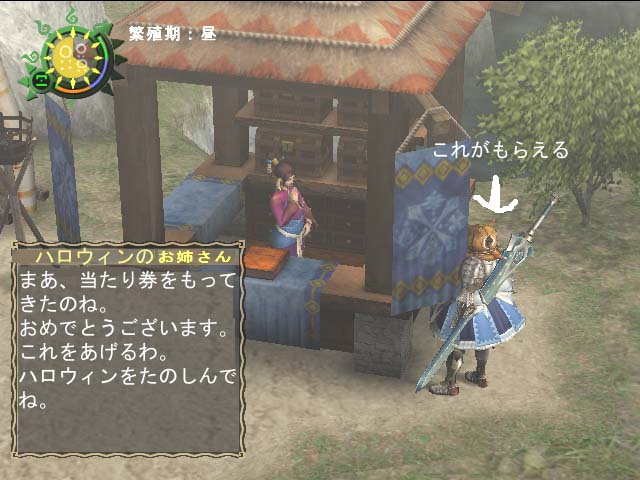 広場正面の竜族のおねいさんに当たり券をわたします。